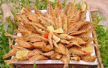 Passe na mistura de fubá e maizena e frite em óleo quente.